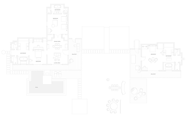 Six Two-Villa Residence with Pool offering two freestanding villas connected by a stretch of private beach and swimming pool to create an oversized hideaway in the Maldives, perfect for families and groups of friends.