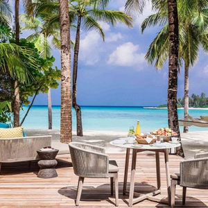 Step out to your outdoor wooden terrace and onto the sand, past your private sun loungers and refreshing outdoor shower, and onto your own beachfront. Your butler and villa valet will discreetly tend to your every need while you ease yourself into island life.
