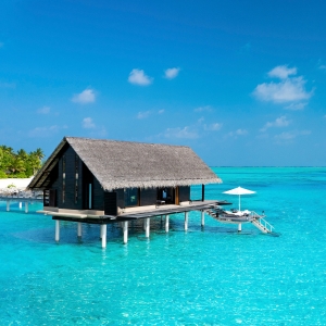 Water surrounds you in these six iconic over-water villas in the Maldives. Your stunning private infinity pool floats above the turquoise lagoon, with a deck where you can indulge in a spot of sunbathing.