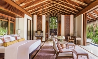 Located on the island’s west side, the villa offers indoor-outdoor living, with a master bedroom fitted with a king-size bed, large living and dining area and chic bathroom. The locally inspired architecture is imbued with subtle Balinese touches, for décor that is authentic and elegantly understated.