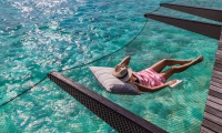 Your private infinity pool stretches from your private deck to the water's edge, offering a truly immersive stay at our Maldives resort. Unwind on the custom-built hammocks, the web of netting rocking you gently with the tropical breeze.