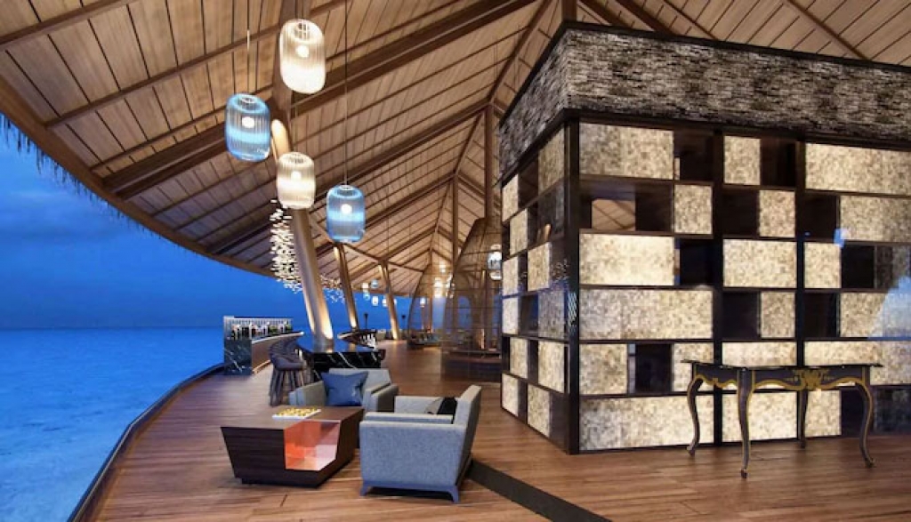 Inspired by the adventures in the classic novel Robinson Crusoe, this themed adult-only bar provides a “castaway chic” refuge for island explorers. Once you have a drink in hand, cozy up and enjoy the panoramic views of the Indian Ocean.