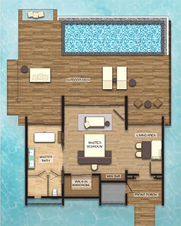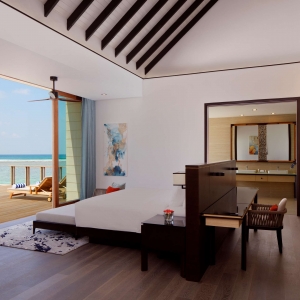 This overwater villa helps you embrace island life with stunning views, a private outdoor deck, and easy access to the pristine ocean waters. Sunbathe in a lounge chair next to the infinity pool as you wait for room service to deliver a refreshing cocktail, or enjoy a break from the sun while tuning in to your favorite show on the IPTV.