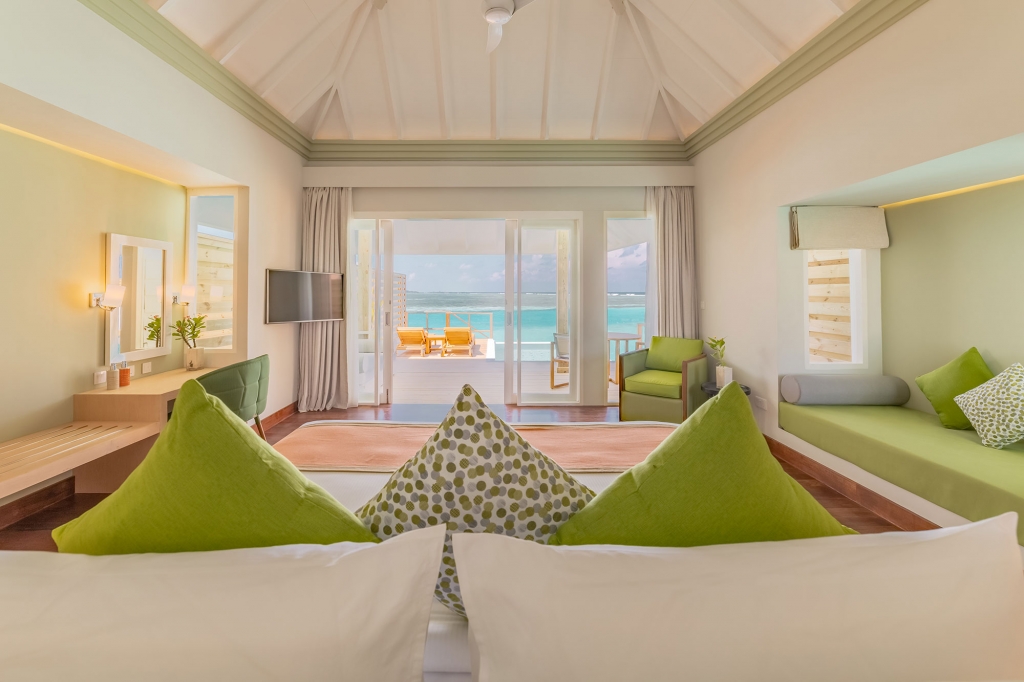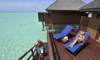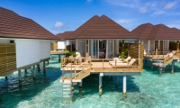 These overwater abodes allow you to unwind in total privacy from their spacious sun decks and sunrise-view jacuzzis. A separate living room offers plenty of space for indoor relaxation, and luxurious bathrooms are flooded with natural light. A great option for couples looking for their own place in paradise.