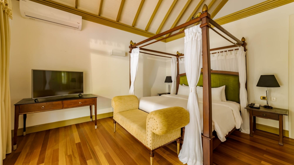 These traditionally-styled villas are perched over the crystal clear blue lagoon, and are just about as close to nature as you can get. With the Indian Ocean totally surrounding you, relax on your own private sundeck before bathing in the warm waters below.