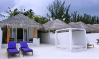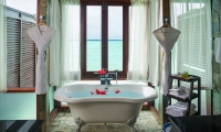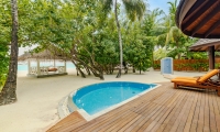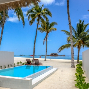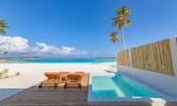 Immersive vegetation welcomes a relaxing Maldivian beach swing overlooking the lagoon. The suite features two king-sized bedrooms with a direct step off to the beach and generously spacious outdoor bathrooms. Living areas lead to a beachfront veranda with sun loungers and a plunge pool.