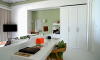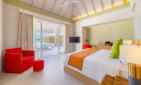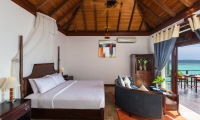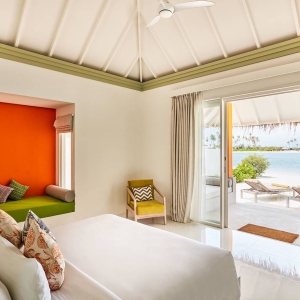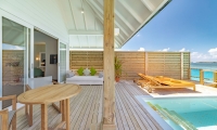 These contemporarily designed villas offer the perfect mix of indoor / outdoor living with a spacious deck overlooking the lagoon, complete with dining table and chairs, loungers and an oversized daybed. Spacious interiors offer a king size bed, alcoved seating area and a bathroom with large tub and separate walk-in shower.