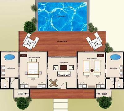 Immerse yourself in the beauty of the Maldives and the wonderful freedom of space in this expansive over-the-water villa. Step out onto the verandah, where you can relax by your private pool or dine while gazing upon the ocean and sunsets. A suitable haven for couples or families with older children, featuring an additional bedroom with twin beds.