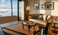 Experience the airy relaxation of these Beach Villas located along the shimmering seashore, nestled amid soothing greenery. Delight in direct access to the beach - a palm-fringed playground for your little ones - and a spacious living room that leads out to a private terrace where you can bask in the expansive ocean views.