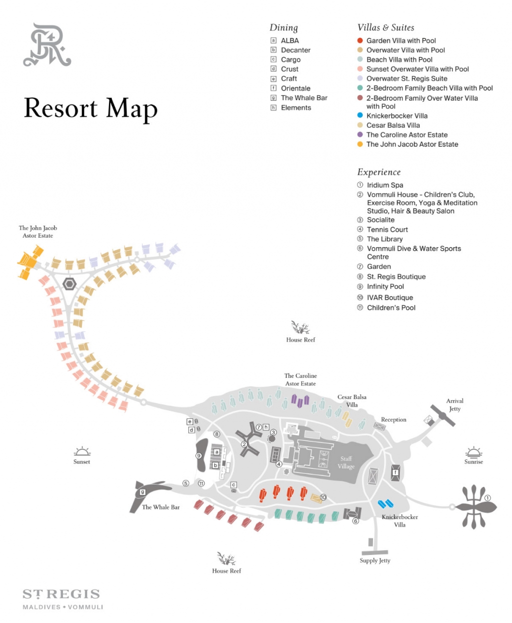 Nestled between verdant rainforest and white-sand beaches on a private island, The St. Regis Maldives Vommuli Resort overlooks the alluring waves of the Indian Ocean. Explore the tropical beauty and rich marine life of this peaceful, eco-conscious setting. A private lagoon, Iridium Spa and outdoor infinity pool promise nonpareil relaxation. A large variety of water sports and excursions at the diving center can be arranged by the signature service, the butlers. In addition, an exquisite culinary fare awaits at the six restaurants and bars. Boasting refined furnishings and island-inspired design, each of our 33 on-land and 44 over-water villas promises picturesque ocean or garden views from private terraces and pools. The legendary St. Regis Butlers deliver bespoke service day or night.