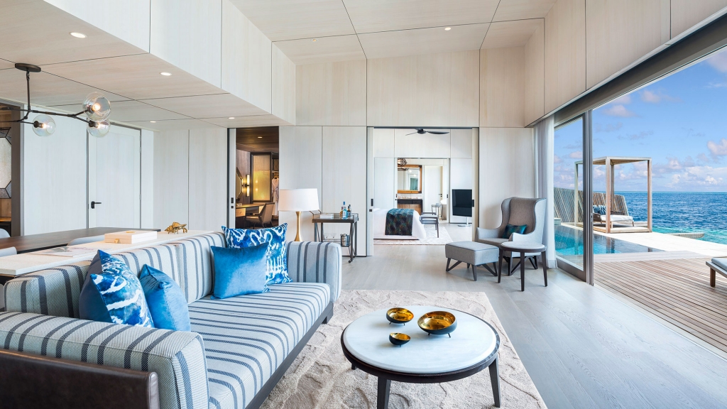 These premier Overwater St. Regis Suites represent the pinnacle of island living, with unforgettable vistas of the Indian Ocean and the rich marine life of the house reef.