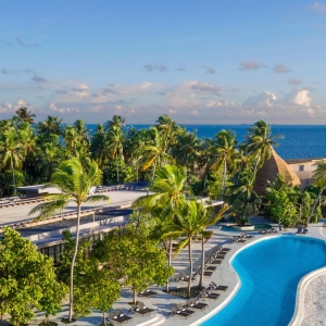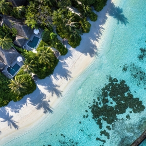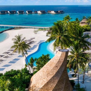 Perched elegantly on the white-sand beaches of Vommuli and revealing fabled ocean views from a furnished terrace and second-story balcony, our Two-Bedroom Beach Suites with Pool promise sophistication beyond expectation.