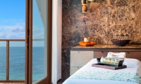 Each of the six couple’s treatment suites—including two Ayurvedic suites with private steam rooms—offers a refined retreat. Sliding-glass doors allow guests to admire unfettered sea vistas from their spa beds while private terraces with soaking bathtubs ensure relaxation enhanced by fresh ocean breezes. En-suite showers and bathrooms provide unsurpassed privacy and convenience. Additional pampering can be found in our spa’s steam rooms, saunas, and cold-drench showers.