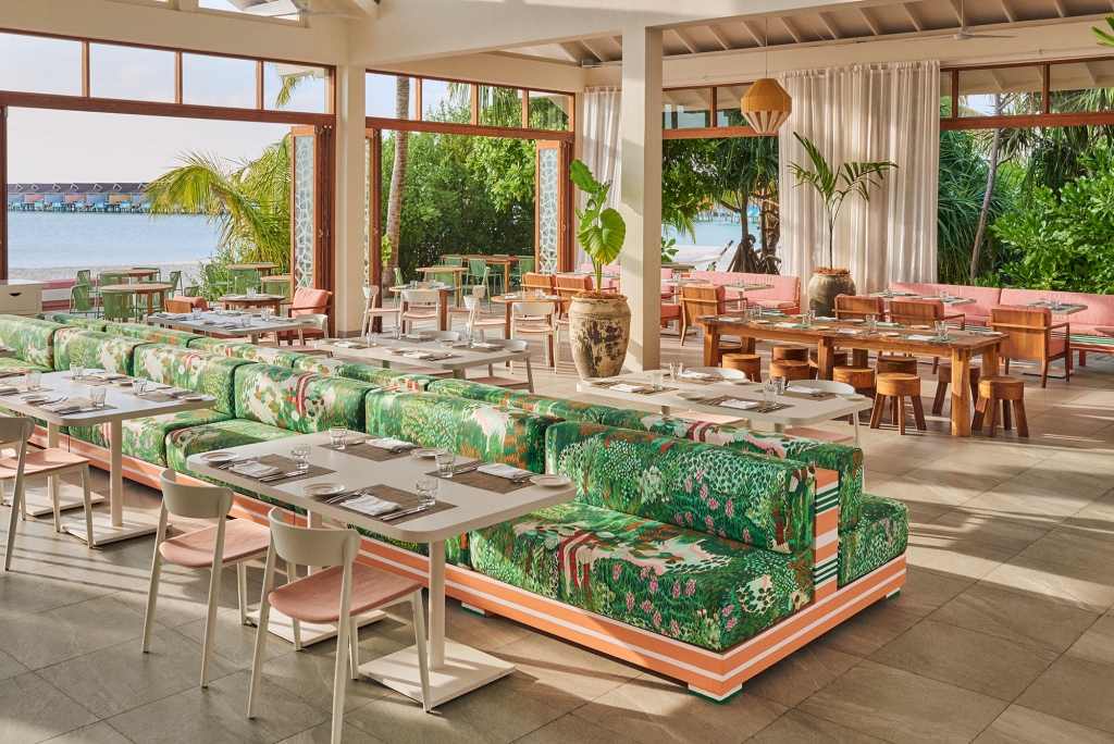 An authentic Maldivian Restaurant, GUDUGUDA features traditional celebratory Maldivian food. Dining low to the floor on cushions indoors and out, surrounded by rustic Maldivian furniture and decorations, guests are enveloped in warm, authentic hospitality that can normally only be found in domestic Maldivian spaces.