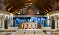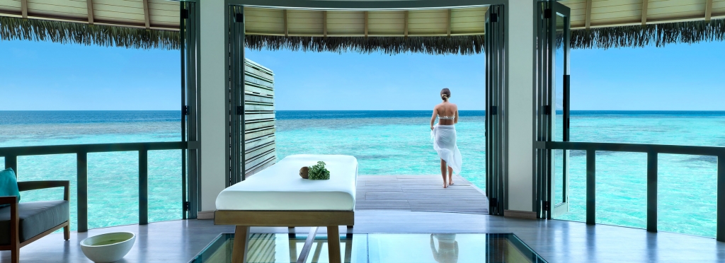 Find inner serenity with expert therapists at the luxurious overwater spa resort, featuring four couple’s treatment rooms with ocean views, eight single treatment rooms, a nail salon, spa boutique, and outdoor relaxation area.