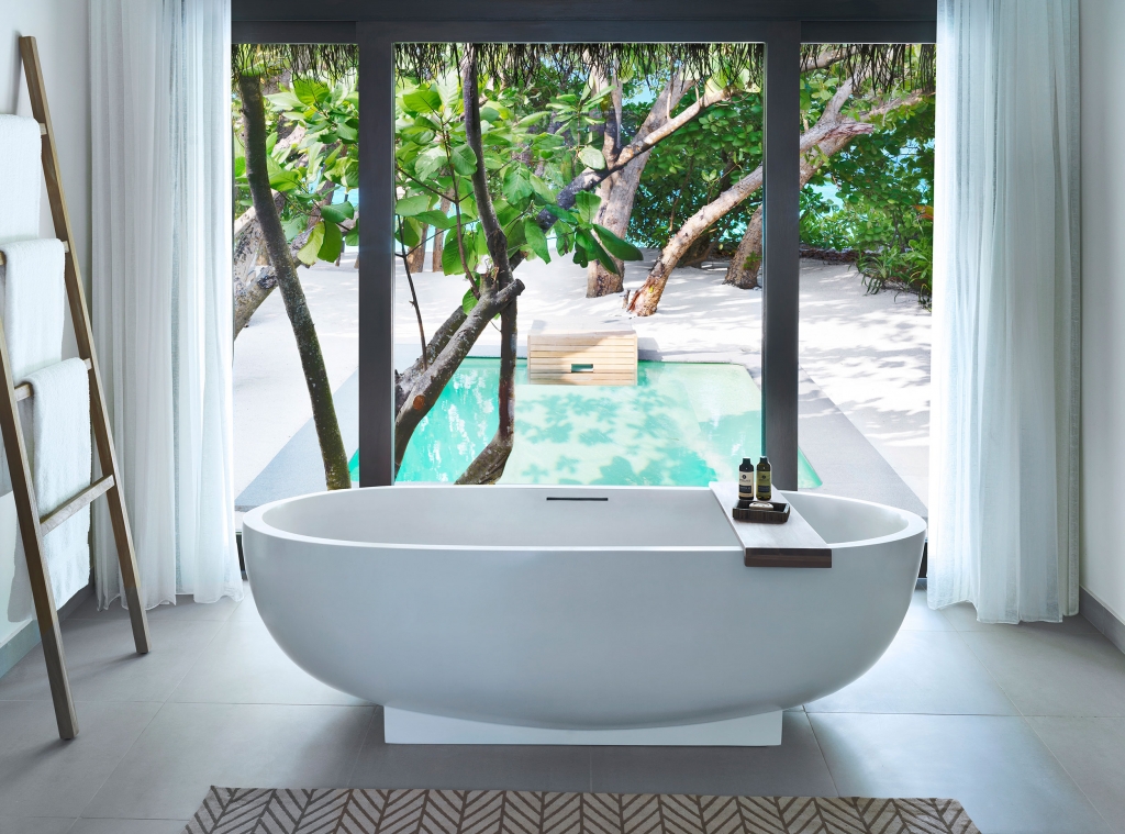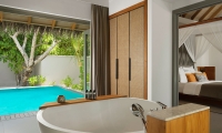 Surrounded by swaying coconut trees and lush foliage with direct beach access and private terrace, Beach Villa with Plunge Pool features a newly added open-air Jacuzzi designed for couples seeking an intimate relaxation