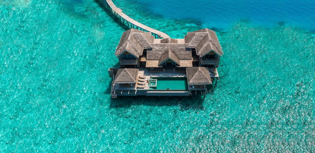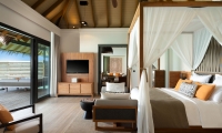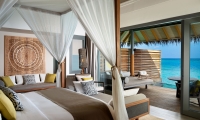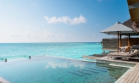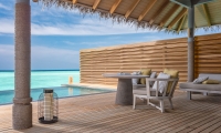 A tranquil sanctuary stilts above the emerald waters, the Over Water Pool Villas feature the same exclusive design as the Over Water Villas enhanced with a spacious deck with a day bed, sun loungers and a private infinity pool.
