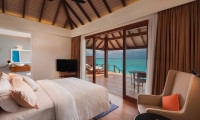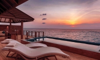 Step out to an expansive veranda leading to a sandy beach, and experience walking on a cloud. Furnished with two inviting loungers, a large sofa, a side table and two chairs, the veranda comes with the option of a 10-square-meter private plunge pool. End your day in this private paradise with a glass of relaxing wine on the open deck as you enjoy a multicoloured Maldivian sunset.