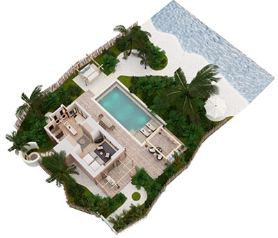 Discover an exclusive island sanctuary surrounded by tropical greenery and white-sand beaches. Features a stunning three-bedroom beach villa, two-bedroom overwater villa, four-bedroom residence, five swimming pools and a private entertainment clubhouse.