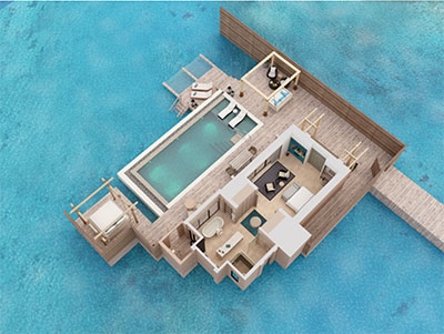 Discover indoor and outdoor island living. These villas feature an overwater terrace with a dining gazebo, overwater hammock, and infinity pool.