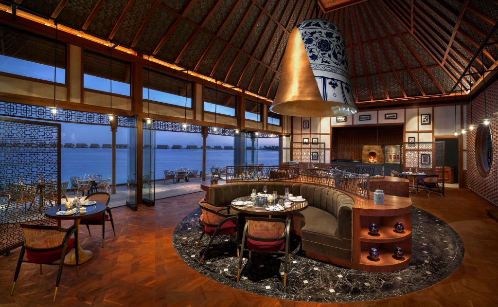 Over the turquoise lagoon serving its signature Peking duck roasted in the Maldives’ first classic woodfired oven. Diners are transported to the era of Shanghainese royalty by specialist Chef Addy and team with an ambience to match.
